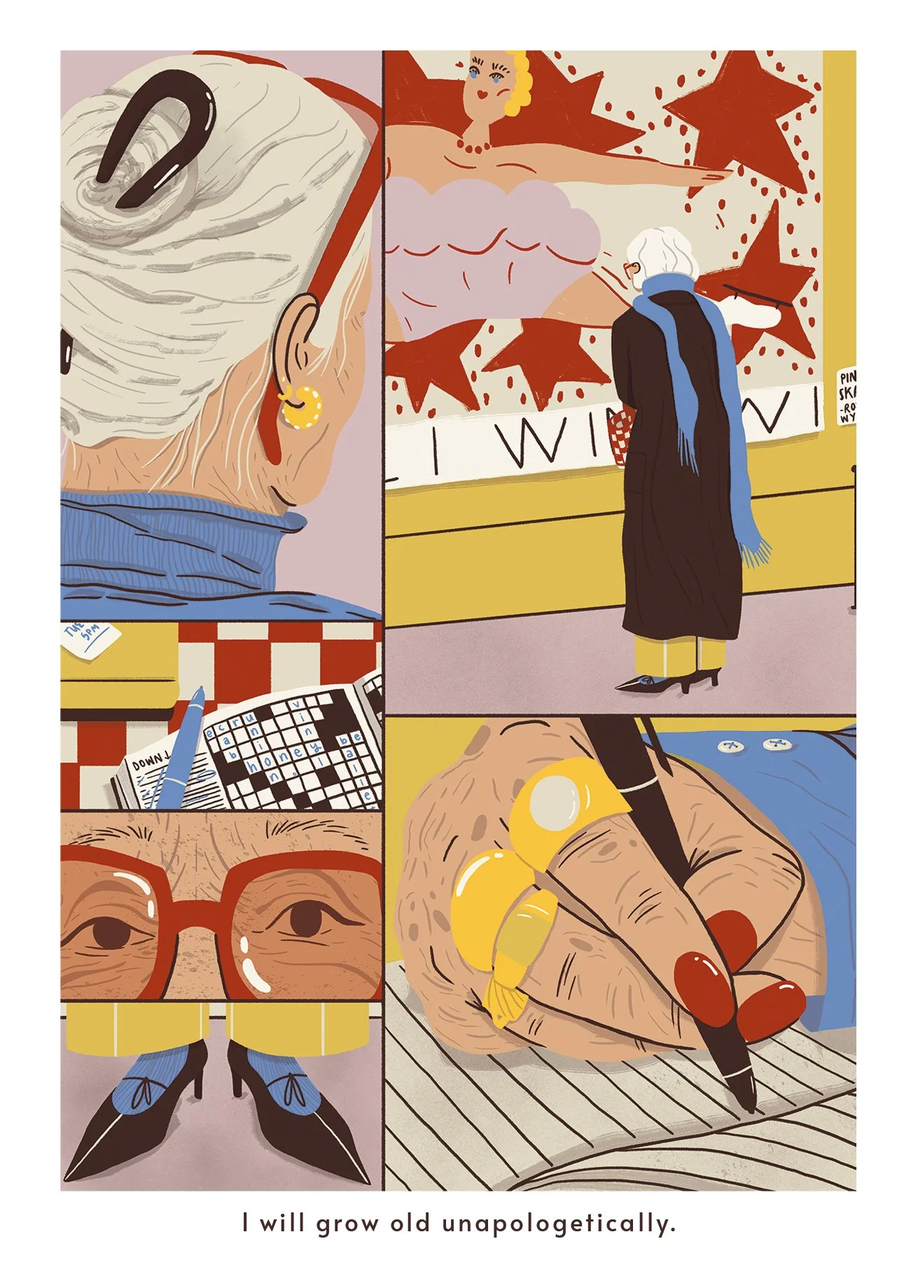 Mrs Claus Christmas Card £3.00 With Love From Christmas Card £3.00 Star Topper Christmas Card £3.00 6 Pack Mixed Christmas Cards £12.50 6 Pack Mixed Christmas Gift Tags £6.00 Mystery Affirmation Post Card - A6 £2.50 I have no time to rush - A4 / A3 print from £15.00 I can create my own joy - A4 / A3 print from £15.00 I will grow old unapologetically - A4 / A3 print from £15.00 It's all proof we've lived - A4 print £15.00 I deserve to simply be myself - A4 print £15.00 F*ck skinnytok - A4 print £15.00 'When I am Seventy' bookmark £3.00 'It's in the rosy cheeks' bookmark £3.00 Made to Order A2 Giclée Print £75.00 Vinyl Stickers £3.00
